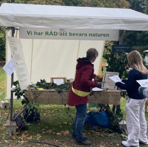 En härlig, solig höstdag med massor av besökare. Ca 8 400 besökare! I vår monter ”Vi har råd för att bevara Naturen” diskuterade vi vilka klimatsmarta val man kan göra. På en tavla hade vi gjort en lång lista på smarta val och man kunde tumma på vilka av dessa man tänkte börja (eller fortsätta) med.